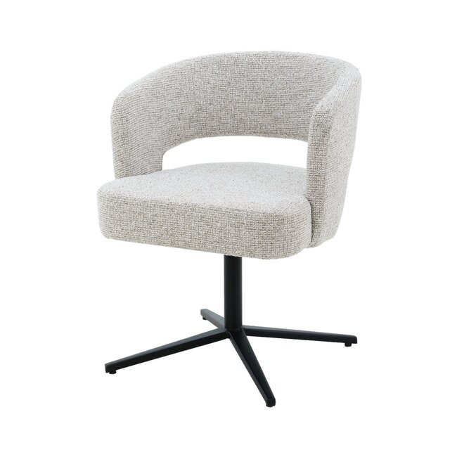 Give your dining area a stylish and comfortable upgrade with this modern swivel chair. Upholstered in a soft, rich fabric, it creates a warm atmosphere and comfortable seating. The rounded backrest with integrated armrests offers excellent support, allowing you to dine comfortably for hours.