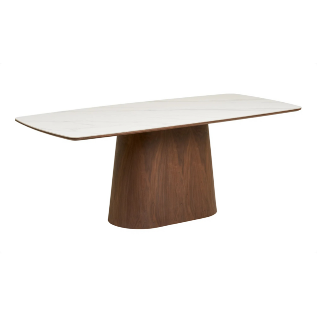 Modern dining table with ceramic top and wooden base