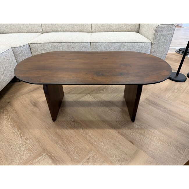 This stylish coffee table, crafted from solid acacia wood, combines sleek design with natural warmth. The elegant, oval tabletop gives the table a soft, modern look, while the sturdy, distinctive legs ensure optimal stability and a powerful silhouette. Sustainable acacia wood is known for its strength, durability, and beautiful, vibrant grain – giving each table a unique character.
