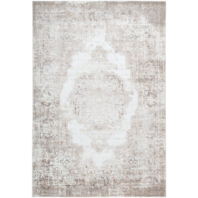 The Presta rug is a stylish rug with a subtle vintage design. The soft, distressed patterns and light hues give it a calm and elegant look, making it a perfect fit for both modern and classic interiors. The central medallion and elegant border add a luxurious touch without being overpowering.