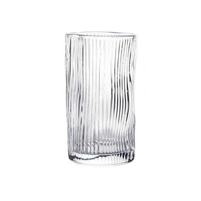 These organically ribbed long drink glasses – set of 6 – combine a natural, flowing shape with a refined ribbed pattern that beautifully refracts and reflects light. Crafted from high-quality clear glass , they exude a modern, stylish look that effortlessly complements any interior. With a practical 270 ml capacity, the glasses are ideal for serving water, soft drinks, juice, cocktails, or other everyday beverages. Their durable quality and elegant finish make this set suitable for both everyday use and special occasions – perfect for those who appreciate functional design with a contemporary twist.
