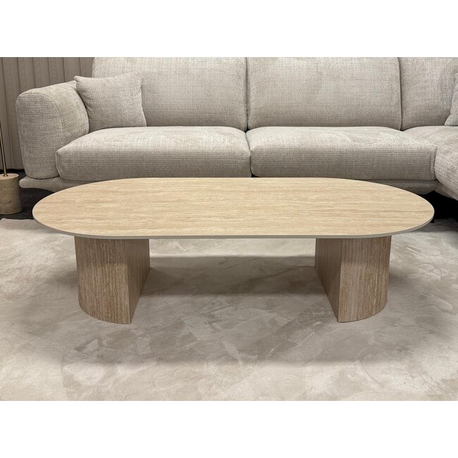 This stylish coffee table combines a sleek design with high-quality materials. The oval tabletop is made of ceramic, which gives it a luxurious look and excellent performance. Ceramic is scratch-resistant, heat-resistant, and easy to maintain – ideal for everyday use.