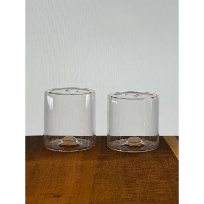 Sade tuz ve biberlik seti, camdan üretilmiştir ve zarif, silindirik tasarımıyla dikkat çekmektedir. Şeffaf cam gövdesi, içindekilerin net bir şekilde görünmesini sağlar ve sete taze, modern bir görünüm kazandırır.